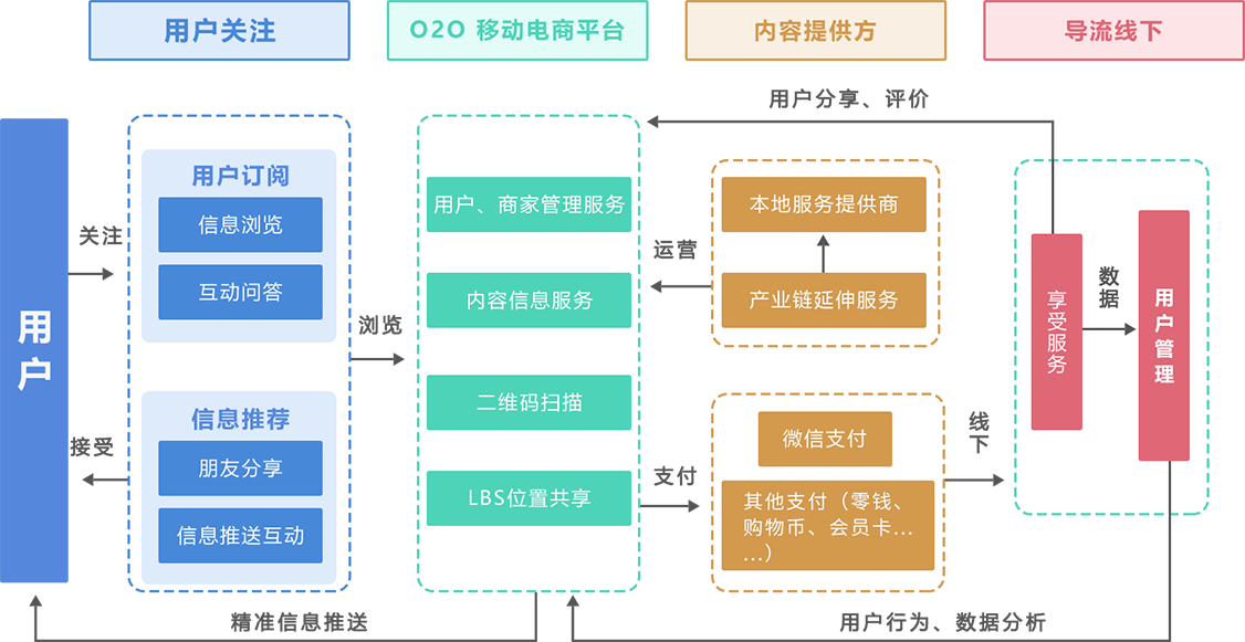 采用“平台+社交+内容+大数据”模式,构建O2O闭环消费生态圈