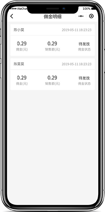 用户下单,系统即时生成订单、 佣金收支明细,账目清晰。