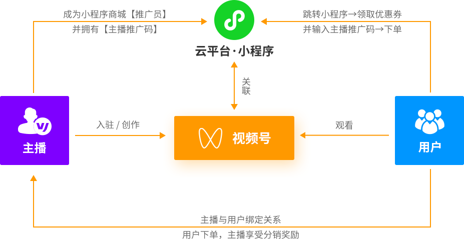 视频号主播与粉丝关联销售关系图示